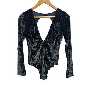 Victoria Secret plunge v-neck crushed velvet black open back bodysuit size M/L