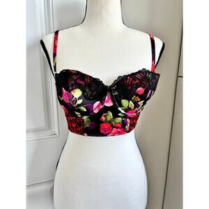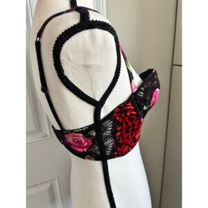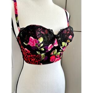Victoria secret rose floral and leopard print bra , bustier top size 34C