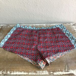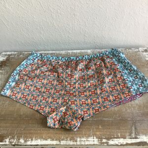 Cute red, light blue and peachy orange shorts with all over geometric patterns. Soft satin feel. Like new excellent condition. Victoria Secret tag size Small. Elasticated waist.