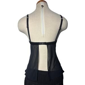 beautiful velvet print on the cups, lined and has underwire- sheer fabric on the bottom, keyhole detail