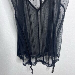 Victoria Secret 34C Sheer black Lace Underwired slip with garter straps