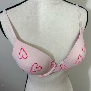 Victoria Secret sz 34C bra candy cane hearts soft pink wit red hearts