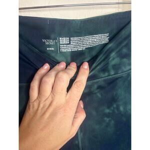 These Victoria's Secret tie dye green and black leggings are perfect for your activewear wardrobe. Made from a comfortable cotton-spandex blend, these leggings feature a pull-on closure, elastic waist, and pockets for convenience. The tie-dye pattern adds a fun and stylish touch, while the leggings are designed for activities like yoga, fitness, and workouts. With a 24-inch inseam and medium size, these leggings are suitable for various seasons and occasions, making them a versatile and fashionable choice for any woman's closet.