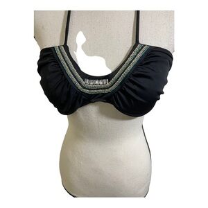 Victoria Secret womens New beach sexy bikini top beaded front black. Size Large