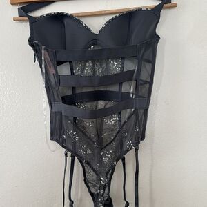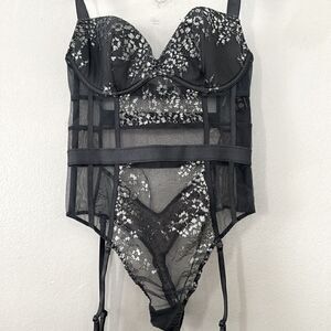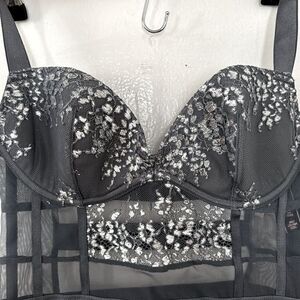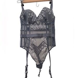 Victoria Secret Grey Silver Embellishment Halter Garter Strap Teddy NWT