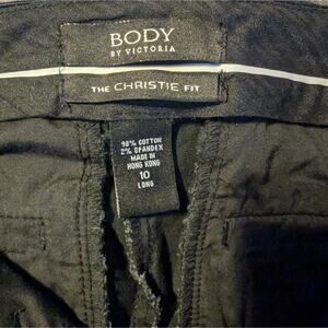 Victoria Secrets Body by Victoria. The Christie Fit. Color: Black. Courdaroy Pants. Double hook, bottom and zipper closure. Two front pockets. False back pockets. Belt loops. Size 10. 34 inch waist. 32 inch inseam.