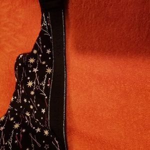 Brand New with tags. Bottom of bra is lined in silver. Writing is pink, cream, red, purple. Stars are cream colored.