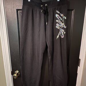Victoria Secrets Pink lightweight sweatpants Black Sequin logo Medium