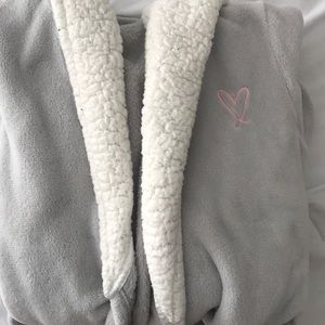 Cozy Sherpa hooded robe! Hits just above my knees (Im 5’10” for reference and it’s in an xs/s)!