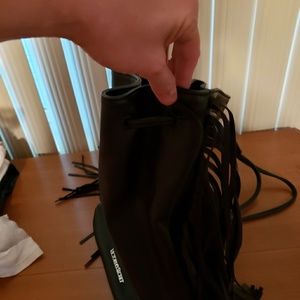 Authentic black leather with a fringe back pack. Only took out of bag for pics. Never used. Kept in smoke and pet free enviroment!