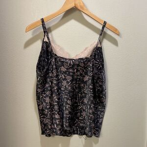 Victoria Secrets black and pink lace cami. It has some fraying on the back of it, please see pictures. It is super cute and in good condition. It is a size XL.