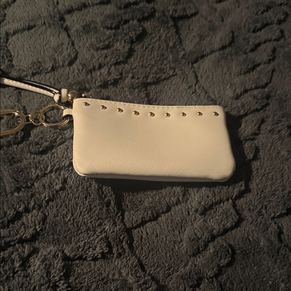 Elegant cream wristlet with gold accents. Perfect for any occasion.