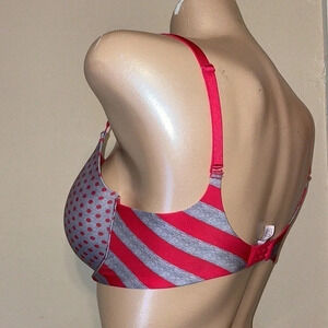 Victoria Secrets women’s bra 34DD polka dot grey red push-up padded underwire