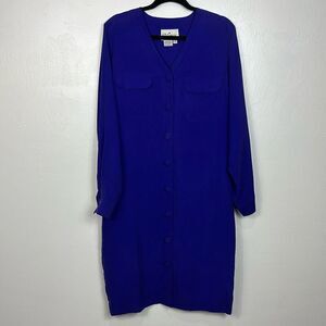 Victoria Soie Vintage 100% Silk Long Sleeve Button Front Dress Size 12