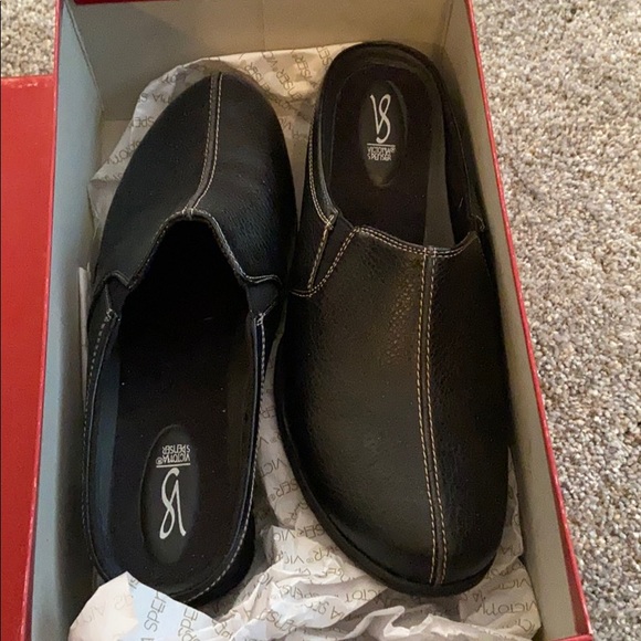 These shoes have never been worn and are in their original box. Excellent cushion on the inside and are very high quality. They are a backless clog design.