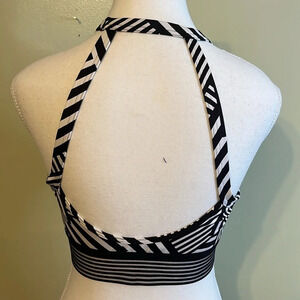 Victoria Sport Black & White Striped Sports Bra Pullover