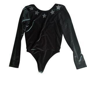 Want to outshine the competition at your next intergalactic dance-off? This black velvet bodysuit with glitter stars will have you twinkling brighter than Orion's Belt.