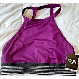 Victoria Sport Purple High Neck Sports Bra M NWT Racerback Striped Band