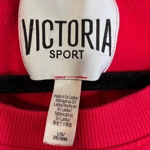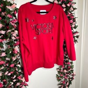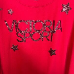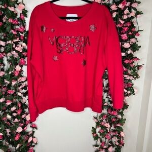 Victoria Sport Red Scoopneck Fleece Lined Sweater Graphic Sparkly L Oversized
