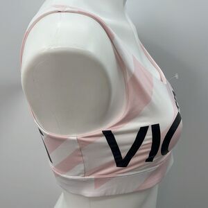 Victoria Sport large striped sports bra pink white