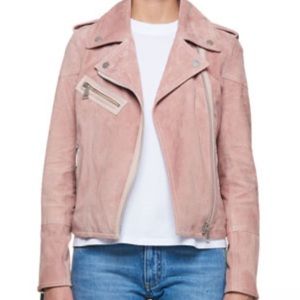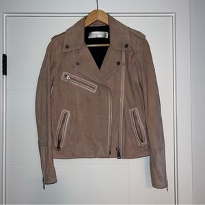 Victoria Beckham moto suede leather jacket. Worn couple of times. In good preowned condition. Size 6. Comes from pet and smoke free home.