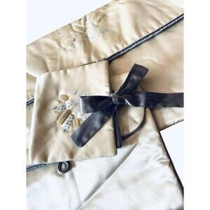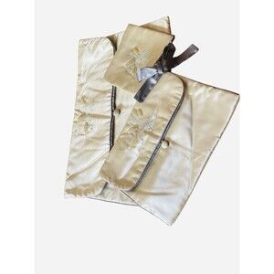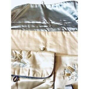 Set of 3 satiny rayon garment or lingerie bags often used for travel. Ivory material with handpainted flowers and beads. Ivory with light blue. Great vintage condition. Faint stain on back of large pouch.