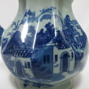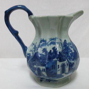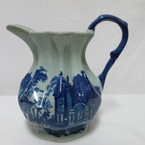 Victoria Ware Ironstone Blue Flow Transferware Pitcher Vase 7.3" tall floral