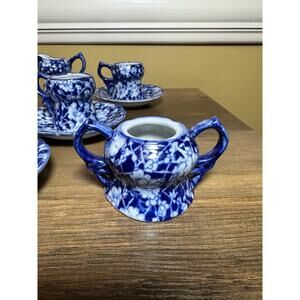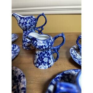 Victoria Ware Stoneware Small Tea Cups Saucers Sugar Creamer Cobalt Flue Floral