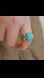 Pre-owned- This stunning ring features a vibrant turquoise stone set in an intricate band. Perfect for adding a touch of elegance to any outfit.