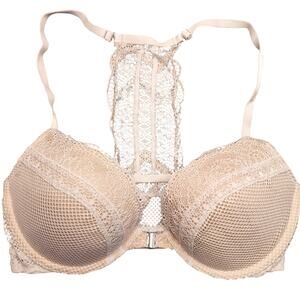 Victoria secret 34C very sexy Lace push up bra front close racerback white cream