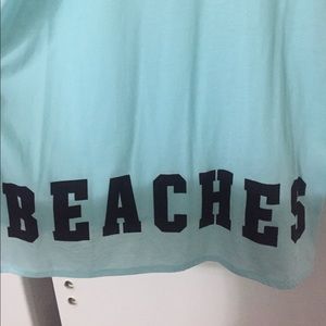 Victoria secret "aloha beaches" tank size small but runs big - as seen in pic. Super flattering to wear as a swimsuit coverup. I'm 5'5" and the bottom of the shirt hits just below my butt. Soft material, muscle tee like fit. Worn once! Perfect for Hawaii