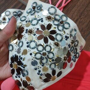 Victoria's secret size large bikini. Coral/pink bottoms with beaded triangle top. Excellent condition
