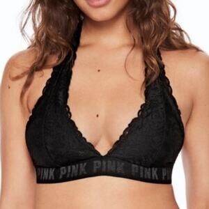 Victoria secret Pink black lace bralette adjustable T-back spellout wireless