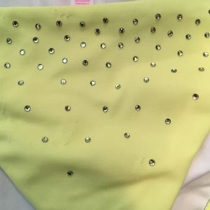 Neon yellow Victoria secret bikini size small bottom and medium top with rhinestones