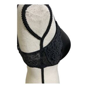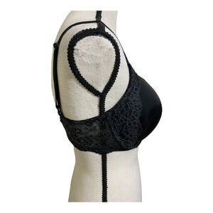 Victoria Secret womens lace black bra. Clasp in back adjustable straps lace on side solid front. Size 32DDD.