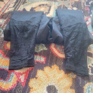 All are in good used condition sizes vary medium and large but all fit like a medium white and black pair with side pocket, black with lace on calf area , black with netting on the thighs , black with criss crossing staps above the rear , leopard print gray and pink, light purple with laces up the front