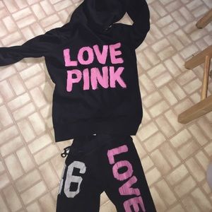 Used Victoria secret love pink sweatpants and sweat shirt size xs