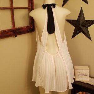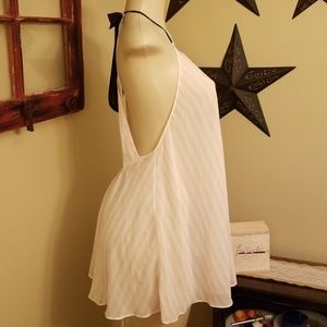 Soft shear gorgeous nighty with trade VS pink stripe pattern. Hook and eye closure at back of neck. Matching panties..NWOT. never worn!!!!