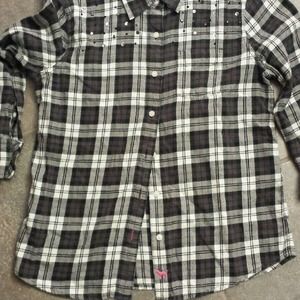 Size small VS rhinestone black and whit plaid flannel. 3/4 quarter sleeves that button up.