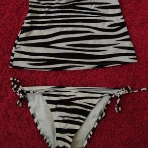 Zebra print, open bandeau front and open back, bikini tie bottoms 34 C top and small bottoms