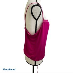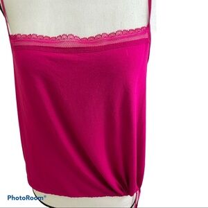 Victoria secret lace and tie bottom cami top hot pink adjustable straps. Cinched bottom. Size large