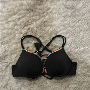 Victoria secret women’s black embroidered gold beaded push-up swimsuit top