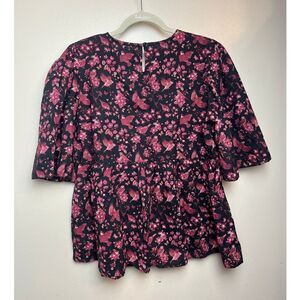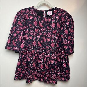 Victoria Dunn Bird Floral Peplum Top Sz. M