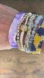 • Yellow, purple, and white woven beadwork