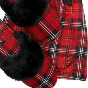 Victoria Secreg Bold Plaid Fur Trim Slippers