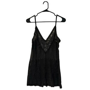 Victoria Secret Black Laced Slip Dress / Chemise Top Size Medium