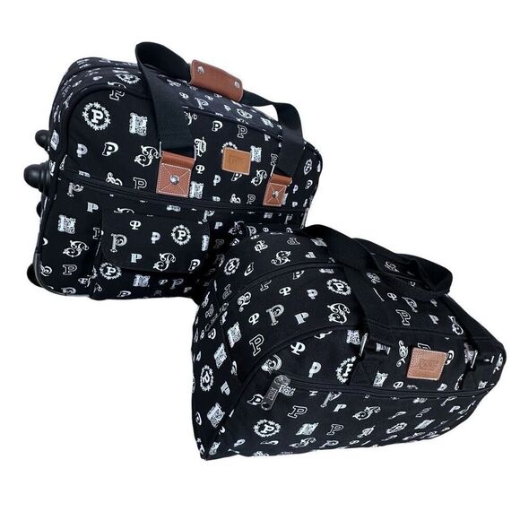 Victoria Secret PINK Varsity Black Rolling Expandable Luggage Duffle Bag 2 piece Set