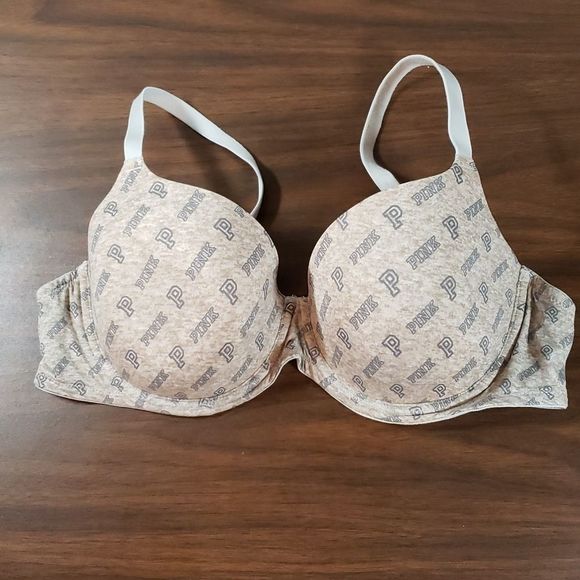 Victoria Secret Pink Wear Everywhere Lightly Lined Logo Print Bra 36DD