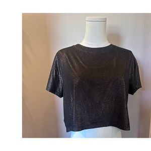 Victoria Secret Sport Black & Gold Shimmer Crop top Size XS Oversized