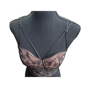 Victoria Secrets Underwire Lined black Lace Balconette Bustier Bra 34B